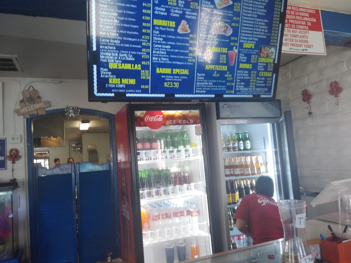 Raw shrimp, marinated willime juice, onions avocado, cucumbers & chillies